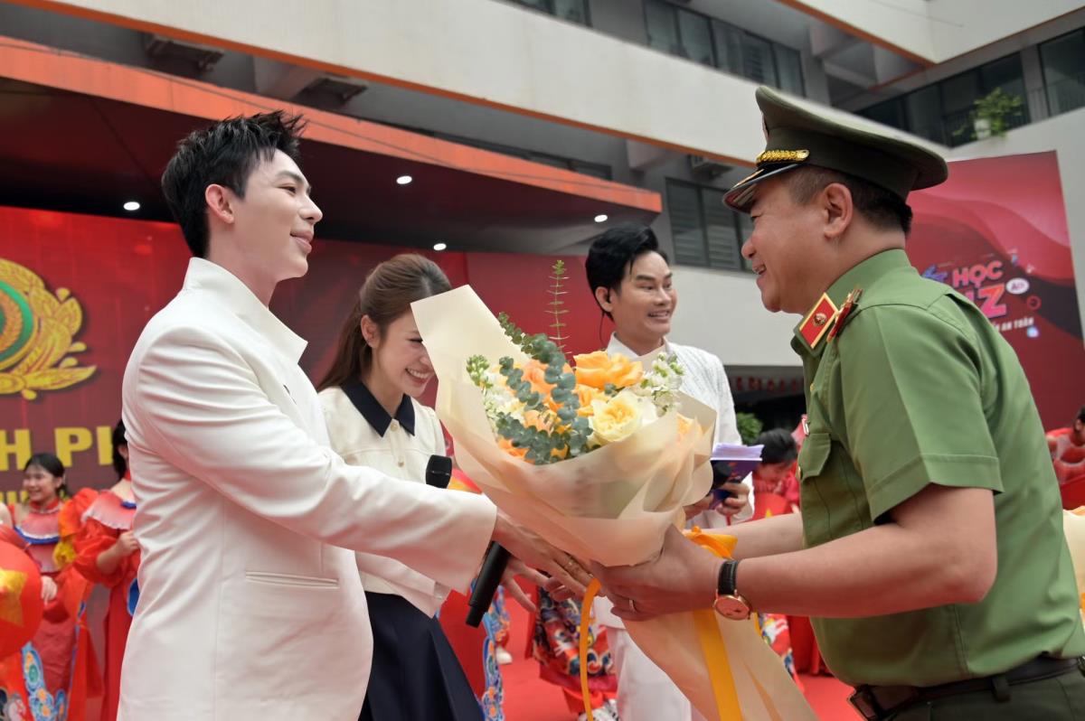 Ngay tại sân trường, sự xuất hiện của ca sĩ Erik đã khiến không khí vỡ òa. Không chỉ mang đến tiết mục âm nhạc rực rỡ, nam ca sĩ còn nhắn nhủ: "Erik cực kỳ vinh dự và tự hào khi được đồng hành cùng Công an Thành phố mang 'Tiết học Gen Z' đến với các bạn. Hy vọng âm nhạc và những chia sẻ hôm nay sẽ góp phần tiếp thêm động lực để các bạn trẻ sống tích cực, có ý thức và luôn tuân thủ pháp luật".