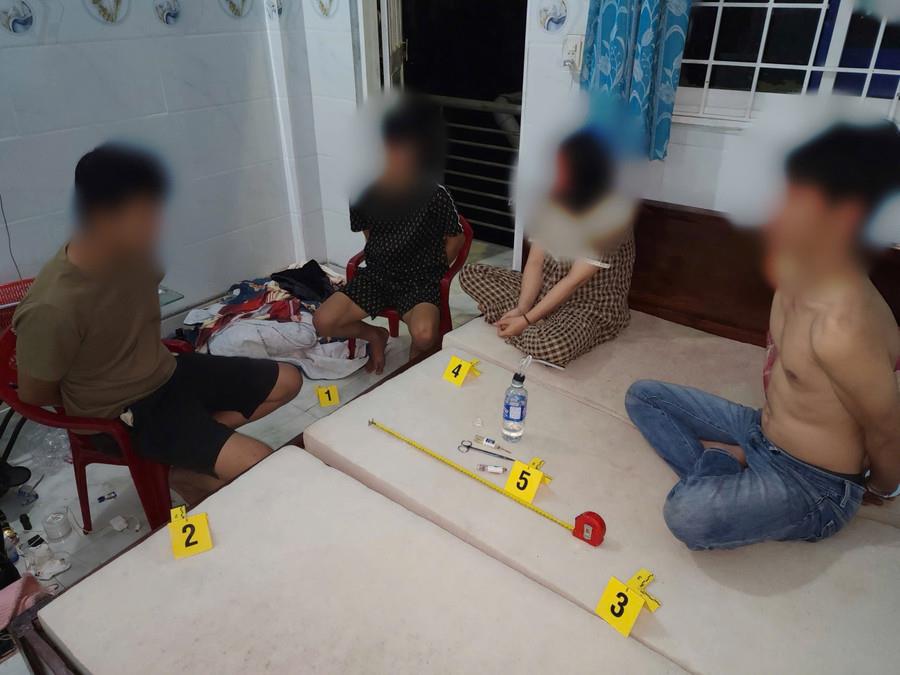 Trong lúc cả nhóm đang “đập đá” trong nhà nghỉ thì bị Công an xã Chư Sê bất ngờ kiểm tra, bắt quả tang vào lúc 0 giờ 20 ngày 12-11.