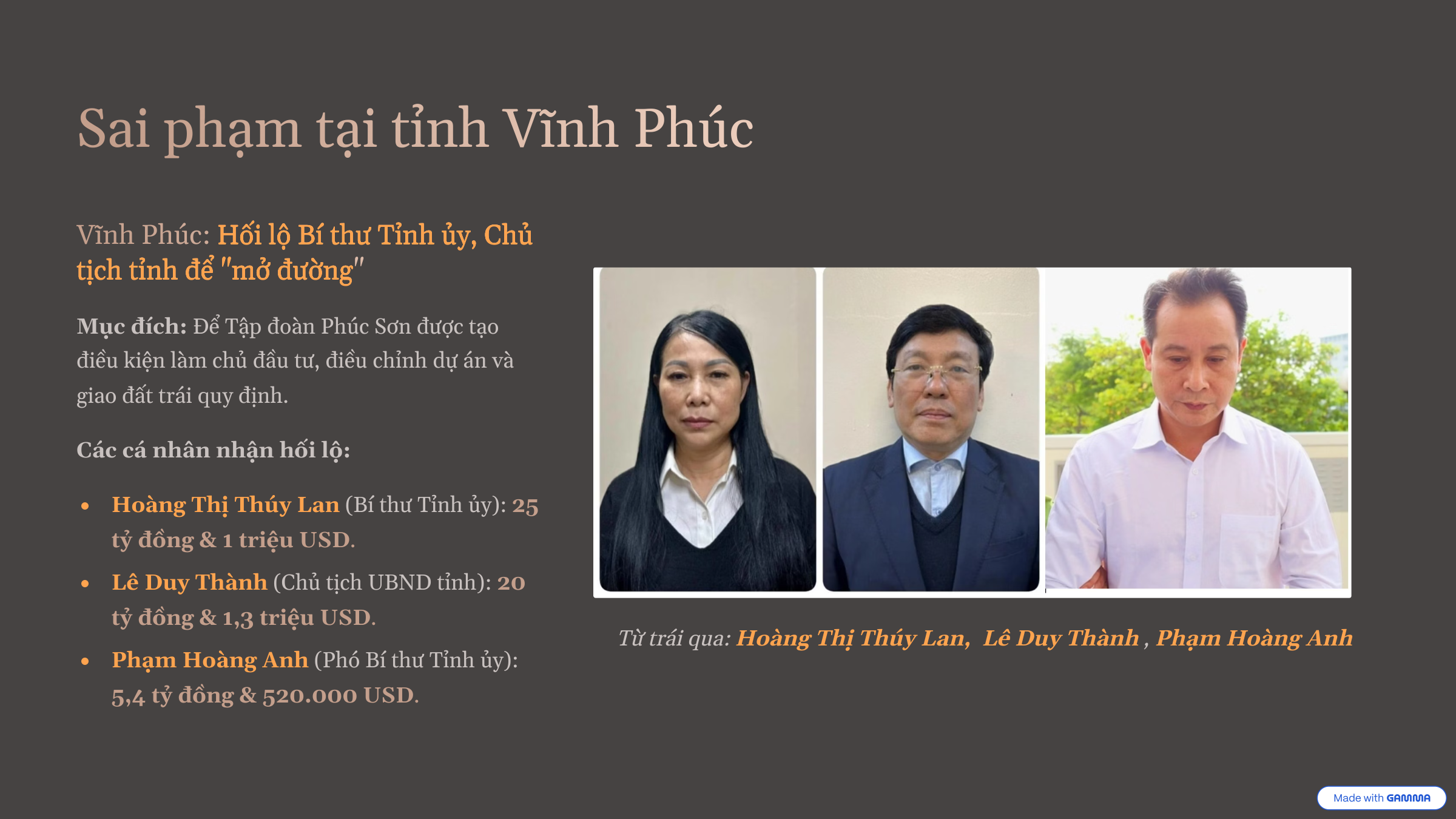 LONGFORM Tổng hợp các sai phạm tại Vĩnh Phúc, Quảng Ngãi, Phú Thọ và Vĩnh Long liên quan đến vụ án Tập đoàn Phúc Sơn Thứ tư, 25/06/2025 08:07