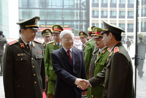 Tổng Bí thư Nguyễn Phú Trọng chúc mừng các đồng chí lãnh đạo Bộ CA |