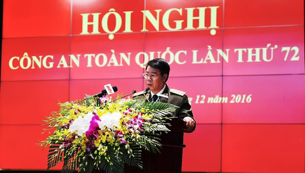 Thứ trưởng Bộ CA Bùi Văn Nam trình bày báo cáo tổng kết công tác CA năm 2016 |