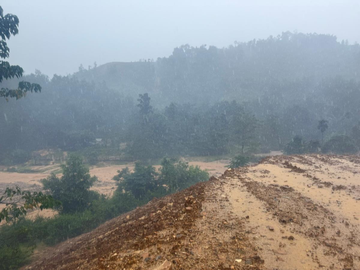 Cũng tại xã Trà Tân, lúc 14 giờ 30 chiều nay, một phần ngọn núi cao tại thôn Trà Giác bất ngờ sạt xuống, cuốn trôi cây cối, đất đá chảy băng qua QL40B khiến người đi đường kinh hãi.