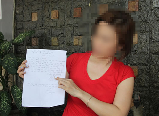 Chị P. với chứng cứ giao tiền cho ông Hai để "chạy" NCC. |