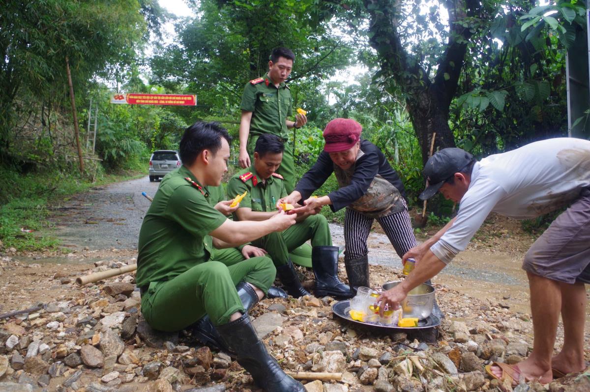 Trong những tổ cắt núi mở đường để đến các bản làng đó, lực lượng Công an xã Trà Leng đóng vai trò tiên phong. Để vào đến các bản làng bị chia cắt, cán bộ chiến sĩ phải mất nhiều giờ vượt qua những quãng đường đồi núi, sông suối hiểm trở. Khi đến nơi, lực lượng Công an xã phối hợp với các thành viên hỗ trợ lương thực, động viên người dân sớm vượt qua khó, ổn định cuộc sống; đồng thời tuyên truyền người dân hạn chế đi lại trên các tuyến giao thông dễ xảy ra sạt lở; không thực hiện đánh bắt cá, vớt củi trên các sông, suối…