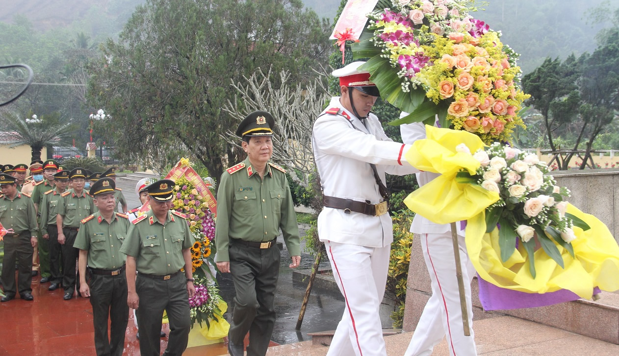 Thứ trưởng Nguyễn Văn Sơn cùng đoàn công tác dâng hoa tại Nghĩa trang Liệt sĩ H. Bắc Trà My. |