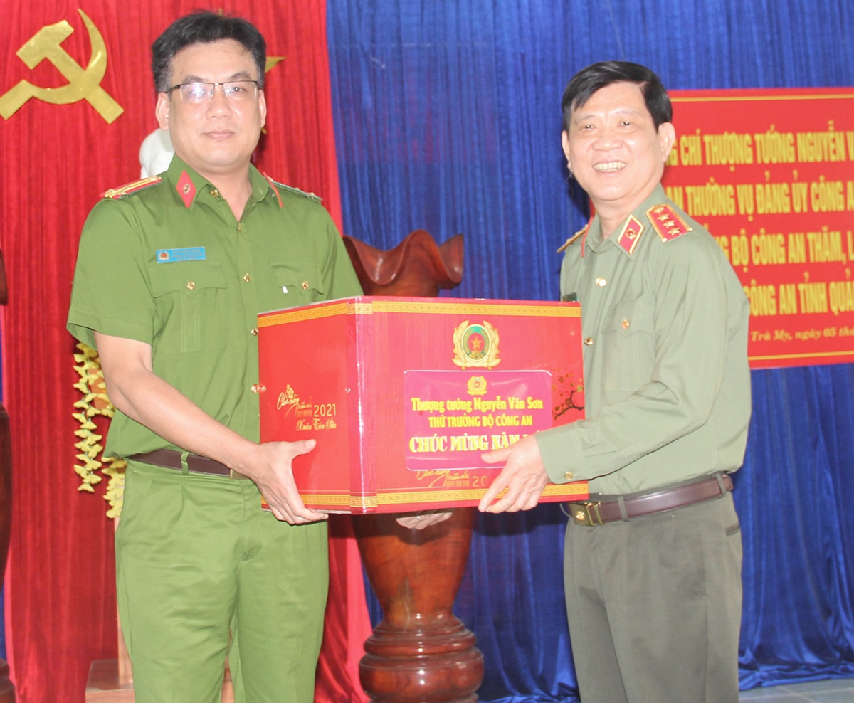 Trước thềm năm mới Tân Sửu 2021, thay mặt lãnh đạo Bộ CA, Thứ trưởng Nguyễn Văn Sơn chúc toàn thể lực lượng CA tỉnh Quảng Nam và gia đình đón Tết đầm ấm, luôn mạnh khỏe để tiếp tục cống hiến sức mình trong sự nghiệp bảo vệ Tổ quốc, vì sự bình yên của nhân dân.