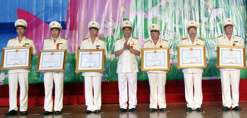 | Thừa ủy nhiệm của Thủ tướng Chính phủ, Đại tá Nguyễn Viết Lợi, Giám đốc CA tỉnh Quảng Nam trao Bằng khen của Thủ tướng cho các cá nhân có thành tích xuất sắc. |