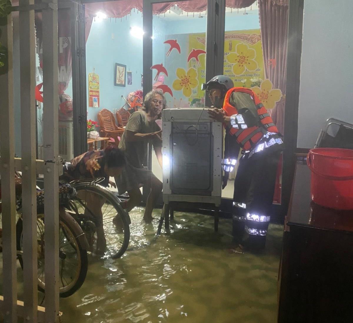 Tại TP Đà Nẵng, do gánh chịu những trận mưa lớn kéo dài, đến rạng sáng 12-6 nhiều vùng thấp trũng các quận, huyện bị ngập cục bộ, trong đó tâm điểm là vùng "rốn lũ" Mẹ Suốt (phường Hòa Khánh Nam, Q. Liên Chiểu). Theo ghi nhận, trận mưa lớn kéo dài 2 tiếng vào khuya 11-6 khiến khu vực đường Mẹ Suốt (nơi thường xuyên ngập nặng khi có mưa lớn) nước dâng cao bất ngờ, có nơi ngập 60-80cm. Do nước dâng nhanh, hàng chục nhà dân đã phải chủ động di chuyển đồ đạc qua những nhà hàng xóm cao hơn tá túc. Ngay trong đêm, lực lượng Công an và các lực lượng chức năng đã xuống địa bàn, hỗ trợ người dân di dời tài sản, trong đó đặc biệt quan tâm hỗ trợ người già, trẻ em đến nơi an toàn.
