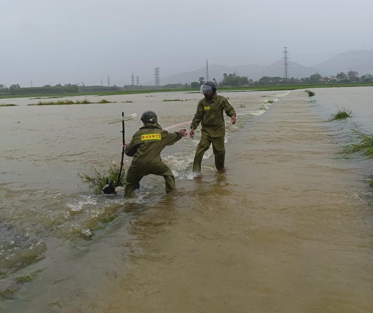 Lực lượng Công an xung kích chốt chặn các khu vực xung yếu, hỗ trợ người dân vùng "rốn lũ"