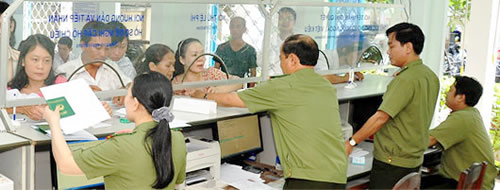 Các bộ phận nghiệp vụ làm thủ tục xuất nhập cảnh cho người dân.