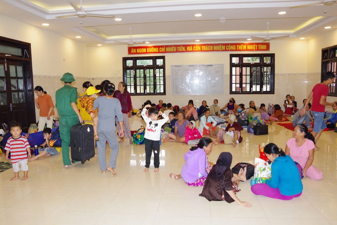 Người dân được đưa về tránh trú bão tại Bộ chỉ huy BĐBP tỉnh Quảng Nam chiều nay. |