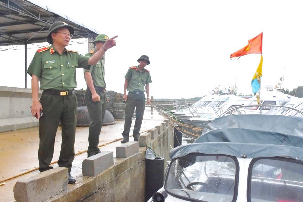 Thiếu tướng Nguyễn Đức Dũng – Giám đốc CA tỉnh Quảng Nam kiểm tra công tác phòng chống bão số 9. |