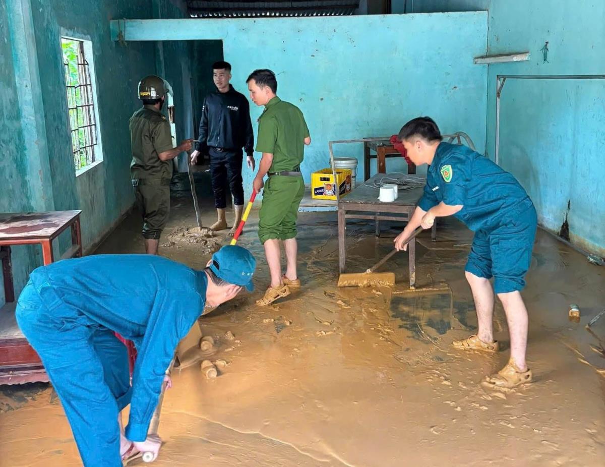 Ngay sau khi trận mưa lớn đi qua, nhiều tuyến phố, nhà dân ngổn ngang bùn đất ảnh hưởng đến đời sống, sinh hoạt, đi lại của người dân. Lực lượng công an nhanh chóng ra quân xuống địa bàn để hỗ trợ bà con ổn định cuộc sống.