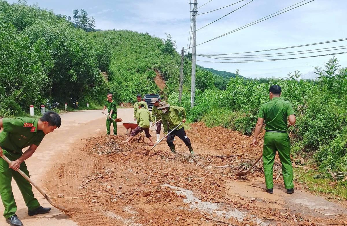 Tại xã Hòa Vang, Thượng tá Mai Xuân Dương - Trưởng Công an xã cho biết, trận mưa lớn kéo dài đêm 5-7 do ảnh hưởng cơn bão số 2 khiến đất đá từ trên đồi sạt lở, vùi lấp nhiều đoạn đường vành đai phía Tây, qua thôn Hòa Thọ, đường 14G qua thôn Phú Túc, xã Hòa Vang, gây mất an toàn giao thông, ảnh hưởng đến việc đi lại của người dân… Không chờ lực lượng chức năng đến xử lý, ngay từ đầu buổi sáng 6-7, CBCS công an xã đã cùng lực lượng Bảo vệ ANTT cơ sở ra quân khắc phục. Hàng chục CBCS đã dùng phương tiện thô sơ, cào xúc, dọn dẹp hàng chục tấn đất đá sạt lở tràn ra mặt đường, đảm bảo cho các phương tiện và người dân đi lại an toàn, thuận lợi.