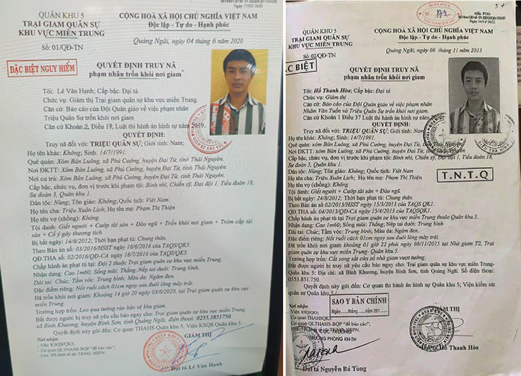 Cho đến chiều 8-6, nhiều biện pháp nghiệp vụ đã được triển khai tại các khu rừng, các điểm chốt chặn phía Nam và Bắc đèo Hải Vân nhưng lực lượng Công an, Quân đội vẫn chưa bắt được Triệu Quân Sự (1991, trú xóm Bản Luông, xã Phú Cường, H. Đại Từ, Thái Nguyên), kẻ giết người lãnh án chung thân, 2 lần trốn trại giam.