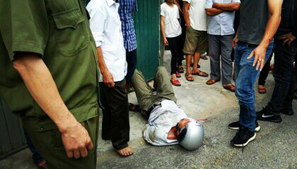 Một trong 3 thanh niên gây TNGT bị người dân khống chế. |