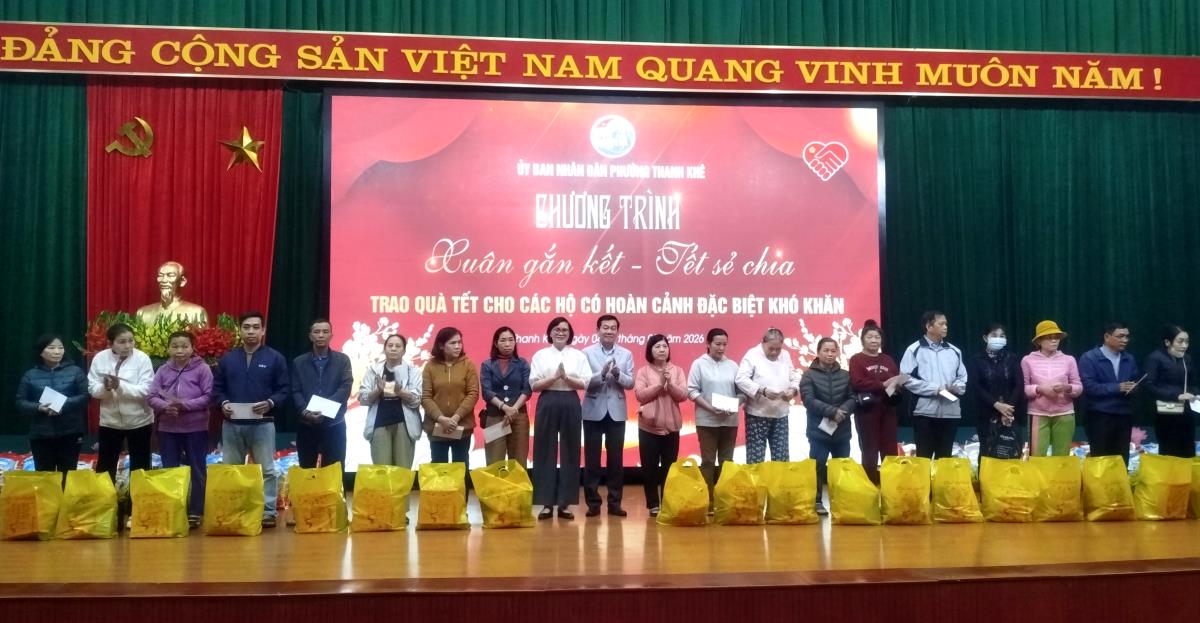 Ngày 4-2, UBND phường Thanh Khê (TP Đà Nẵng) cùng các doanh nghiệp trên địa bàn đã tổ chức Chương trình “Xuân gắn kết-Tết sẻ chia” nhằm hỗ trợ thiết thực cho hàng trăm hộ gia đình có hoàn cảnh đặc biệt khó khăn đón Tết cổ truyền đầm ấm, đầy đủ hơn.