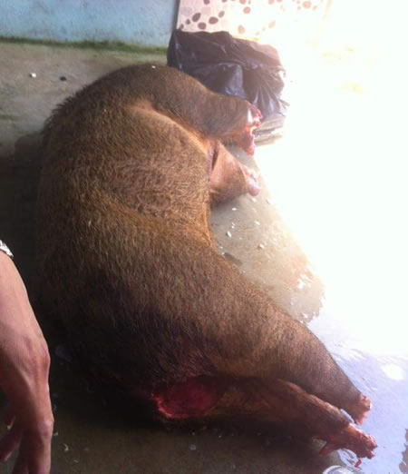 Một con lợn rừng bị giết được đăng tải một cách "hồn nhiên" trên mạng xã hội. |