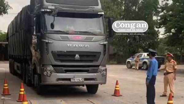 Lực lượng chức năng cân tải trọng đối với xe chở clinker. |