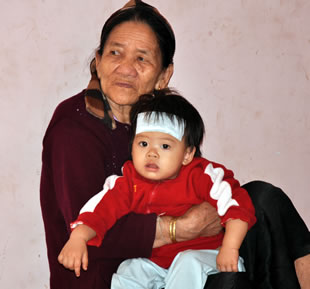 Mẹ già và con của đồng chí Hà Thái Yềm. |