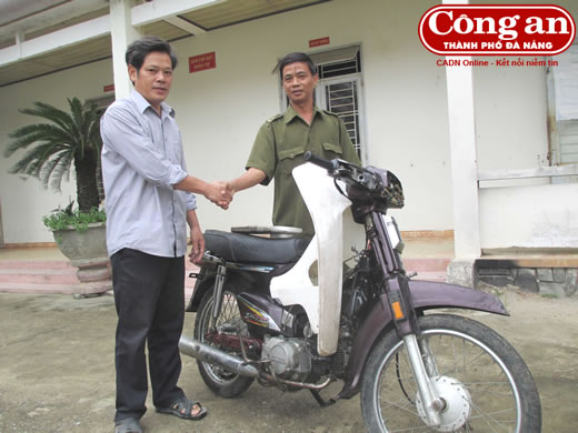 (Cadn.com.vn) - Anh Trần Đình Dũng (trú thôn Yến Nê 2, xã Hòa Tiến, H. Hòa Vang, Đà Nẵng) đã nhận lại chiếc xe máy BKS 43K1-7369 bị mất trộm trước đó từ CAX Hòa Tiến. Ngày 1-12, CAX cho hay, qua TTKS, lực lượng CAX phát hiện xe máy trên bỏ tại khu đất trống nên tạm giữ và xác minh chủ sở hữu.