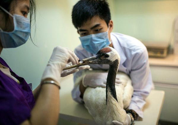 (Cadn.com.vn) - Đây là hình ảnh một con sếu đầu đỏ bị gãy mỏ đang được chăm sóc và điều trị tại một bệnh viện động vật tại Quảng Châu, Trung Quốc. Nó bị gãy mỏ khi chiến đấu với những con sếu khác. Và hiện nay, để giúp cho chú sếu này, các công nhân đến từ Cty công nghệ tại Quảng Châu tạo ra mỏ nhựa với công nghệ 3D để thay thế. Mỏ nhân tạo này được sản xuất từ hợp kim titan.
