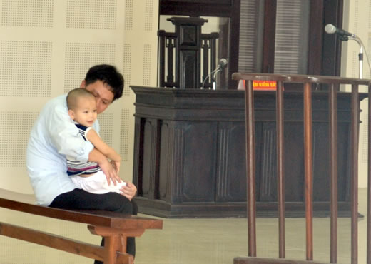 Sau khi HĐXX vào nghị án, bà H. xin lực lượng làm công tác bảo vệ trật tự phiên tòa cho bé được gặp ba. Mấy phút ngắn ngủi, đứa bé hết hôn lên má, lên trán rồi rờ mắt, rờ mũi ba. Bé hỏi “sao họ lại trói tay ba? Ba ơi, nói họ đừng trói tay nữa để ba có tay bồng con”, rồi bé quay lại vẫy bà và mẹ vào đưa ba về nhà... khiến nhiều người dự khán không khỏi rơi nước mắt.
