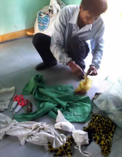 Tang vật của vụ án và áo quần chị Thanh bị xé rách.