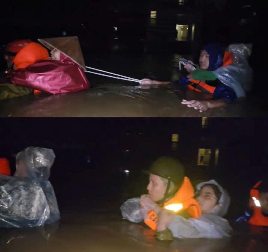 Trước đó, mưa lớn kéo dài, tại nhiều khoa, phòng điều trị bệnh nặng nước lũ ngập sâu, CATP Huế đã huy động hơn 50 CBCS có mặt tại bệnh viện, phối hợp với đội ngũ y, bác sĩ bác, nhân viên y tế, bảo vệ bệnh viện và người nhà bệnh nhân xuyên đêm đưa gần trăm người bệnh nặng, các trang thiết bị y tế lên tầng cao để bảo đảm an toàn cho bệnh nhân trong quá trình điều trị.