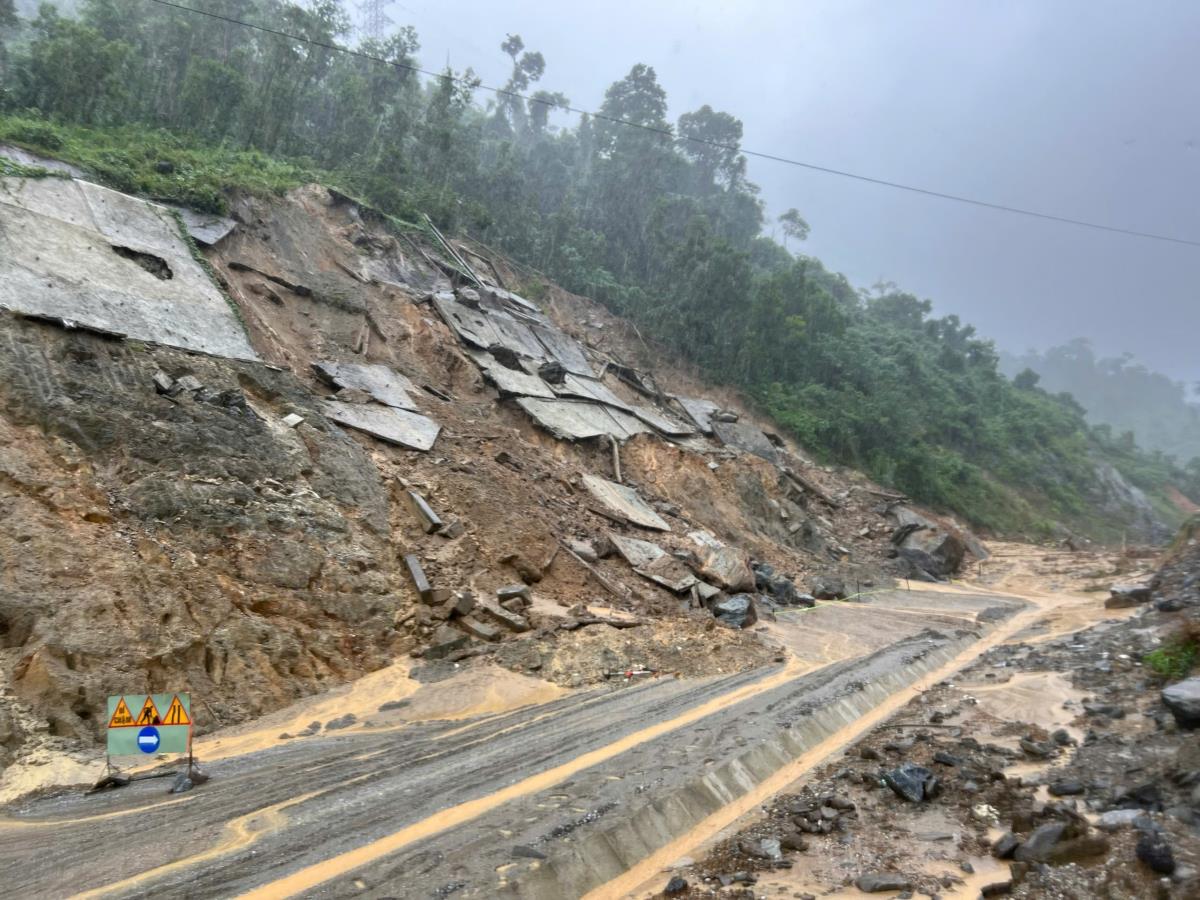 Cũng trong ngày 26-10, tại Km1403+00 và Km1406+600 đường Hồ Chí Minh thuộc xã Phước Năng, TP Đà Nẵng đã xảy ra sạt lở ta-luy dương với khối lượng ước tính 2.400m3. Đất, đá sạt lở tràn xuống mặt đường gây tắc giao thông hoàn toàn. Dù đã huy động thiết bị và nhân công nhanh chóng có mặt để triển khai các phương án giải phóng nhưng mưa lớn khiến ta-luy tiếp tục sạt lở nên tiến độ hót dọn rất chậm. Đến cuối ngày lực lượng chức năng mới giải phóng tạm thời để thông xe 1 vệt. Đơn vị quản lý, bảo trì đường bộ đã triển khai phương tiện, thiết bị và nhân công có mặt tại hiện trường và khẩn trương tiến hành hót dọn đất đá. Cho đến cuối ngày, một số điểm chỉ thông xe được 1 vệt do mưa lớn liên tục, việc tiếp cận hiện trường khó khăn, lại phải đảm bảo an toàn do trong khu vực tiềm ẩn nguy cơ tiếp tục sạt lở.