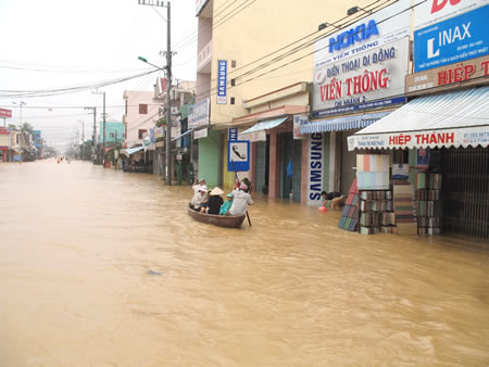 Mưa lớn đã làm nhiều địa phương ở miền Trung bị ngập chìm trong nước lũ. Ảnh: H.A |