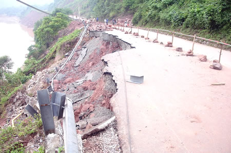 Đường Hồ Chí Minh nhánh Đắc Rông - A Lưới bị sụt lở nghiêm trọng. Ảnh: B.H |