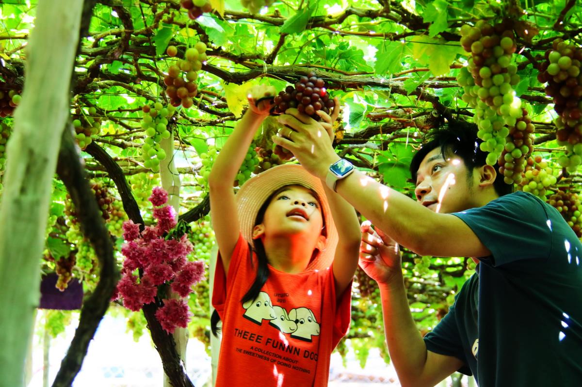 Nho chín trĩu trên cây, cả vườn nho đầy lá loang loang nắng. Những chiếc ghế nhựa, bàn nhựa bày tạm bợ, bạn chỉ ngồi xuống là được mời ăn nho và uống rượu nho. Vườn nho chín kích thích bạn, nhất là các cháu bé đi theo. Có chiếc giỏ xinh xinh để sẵn, có cây kéo sắc bén. Cứ đi vào mà chọn, lấy kéo cắt chùm nho bỏ vào giỏ, như người làm vườn thu hoạch. Giá nho tại vườn cao hơn ngoài chợ, nhưng chẳng ảnh hưởng gì với những người ghé qua, tận hưởng mùa nho chín.