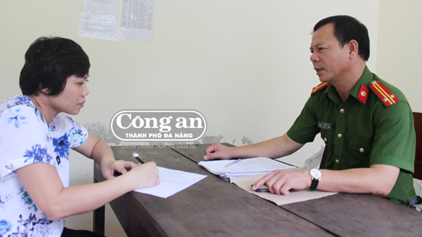Cơ quan CSĐT CAQ Cẩm Lệ làm việc với Hồ Thị Nga. |