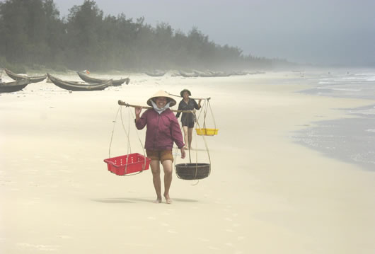 Tôi quan sát thấy từ xa, có vài em nhỏ lon ton bắt sứa cùng bố mẹ. Em Nguyễn Thị Duyên (13 tuổi) đang oằn lưng xách một thùng nhựa đựng sứa nặng đầy. Với lứa tuổi như em, các em nhỏ ở thành phố đang được bố mẹ cưng chiều, mặc áo quần đẹp, cuối tuần được đi chơi công viên... nhưng với em Duyên thì sau khi đi học ở lớp về, em phải đi bắt sứa cùng bố mẹ để đắp đổi qua ngày và có tiền ăn học.