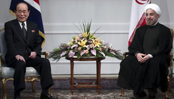 Tổng thống Iran Hassan Rouhani (phải) tiếp ông Kim Yong Nam, một quan chức cấp cao Triều Tiên, tại Tehran. Ảnh: Diplomat |