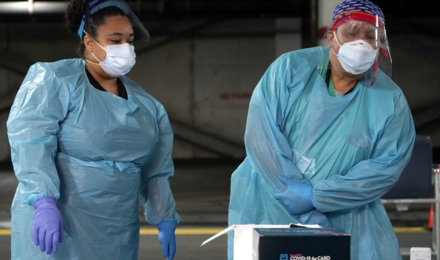 Các y tá kiểm tra tình trạng các xét nghiệm nhanh Covid-19 tại một nhà để xe ở West Nyack, New York, Mỹ hôm 30-11 (giờ địa phương). Ảnh: AP |