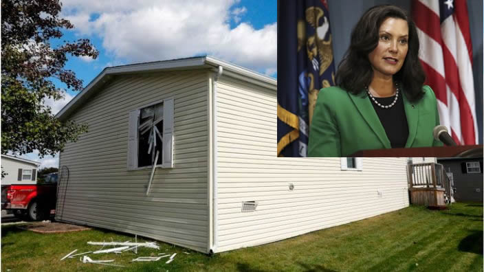 Các lực lượng FBI đột kích nhà của tên Ty Garbin và bắt giữ y hôm 7-10 vì âm mưu bắt cóc Thống đốc bang Michigan, bà Gretchen Whitmer (ảnh nhỏ). |