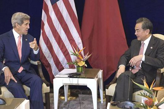 Trong cuộc hội đàm với người đồng cấp Trung Quốc Vương Nghị hôm 5-8 bên lề các cuộc họp liên quan đến 10 nước ASEAN, Ngoại trưởng Mỹ John Kerry bày tỏ mối quan ngại về những hoạt động cải tạo đất, xây dựng trên hòn đảo nhân tạo của Bắc Kinh ở biển Đông cũng như hành động quân sự hóa vùng biển này.