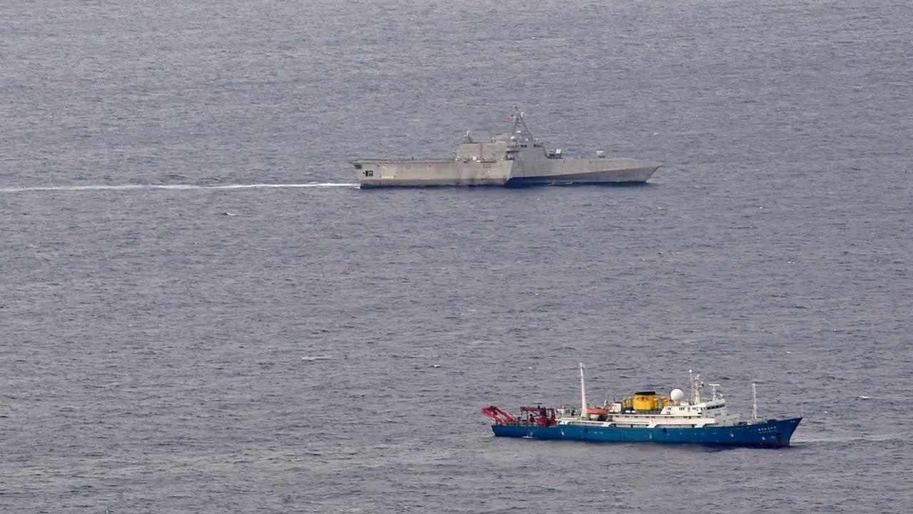 Tàu tác chiến cận bờ USS Gabrielle Giffords hoạt động trên Biển Đông hồi tháng 7-2020, kèm sát tàu Hải Dương Địa chất 4 của Trung Quốc.