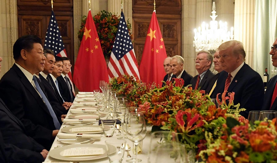 Tổng thống Mỹ Donald Trump (thứ 2, bên phải) và Chủ tịch nước Trung Quốc Tập Cận Bình (thứ 2, bên trái) làm việc bên lề Hội nghị thượng đỉnh G20. Ảnh: AFP |