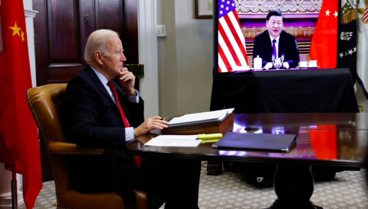 Tổng thống Mỹ Joe Biden trong cuộc gặp thượng đỉnh trực tuyến với Chủ tịch Trung Quốc Tập Cận Bình hồi tháng 11. Ảnh: Reuters |