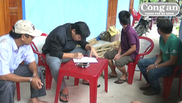 Các đối tượng đánh bạc bị bắt quả tang tại xã Phổ Phong. |