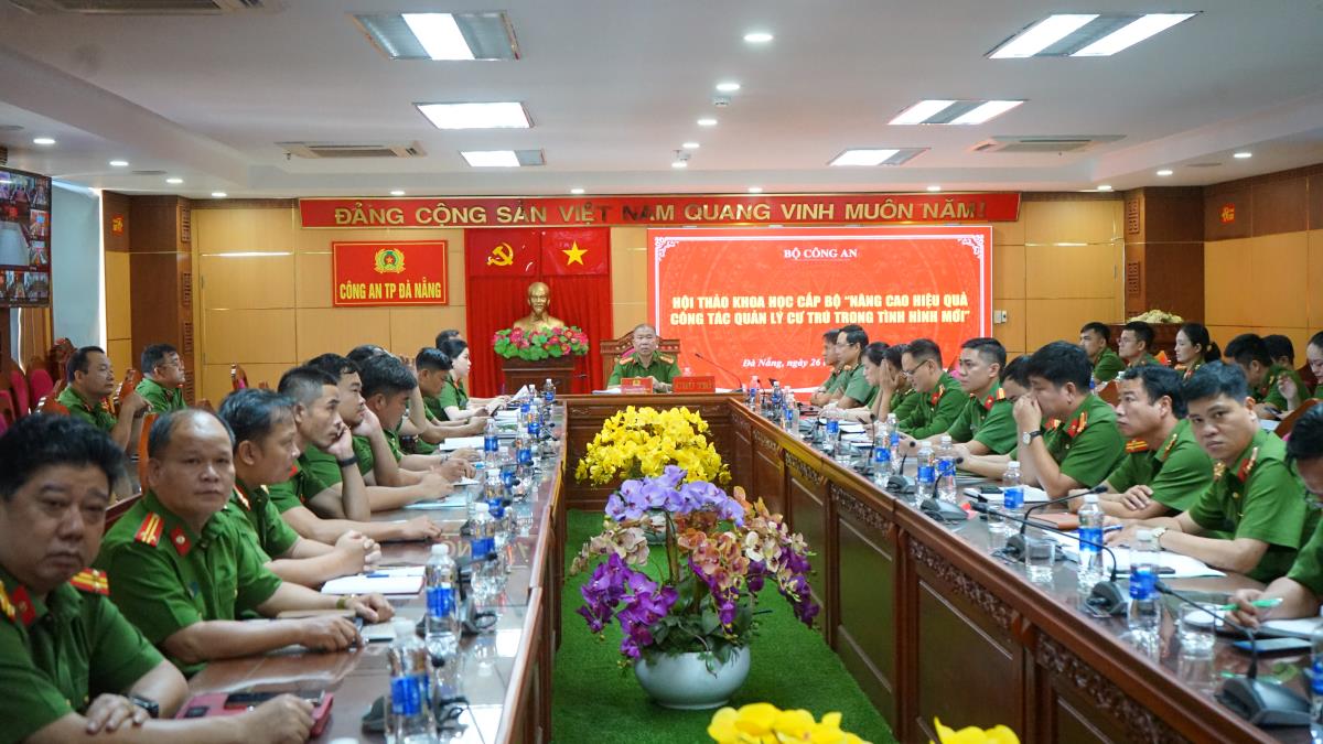 Đồng chủ trì Hội thảo có GS. TS Trung tướng Trần Minh Hưởng- Giám đốc Học viện Cảnh sát nhân dân; TS Thiếu tướng Vũ Văn Tấn- Cục trưởng Cục Cảnh sát QLHC về TTXH. Hội thảo diễn ra trực tuyến từ điểm cầu Bộ Công an đến Công an các đơn vị, địa phương trên cả nước. Tại Công an TP Đà Nẵng tổ chức hai điểm cầu trực tuyến tại trụ sở phường Hải Châu và phường Bàn Thạch.