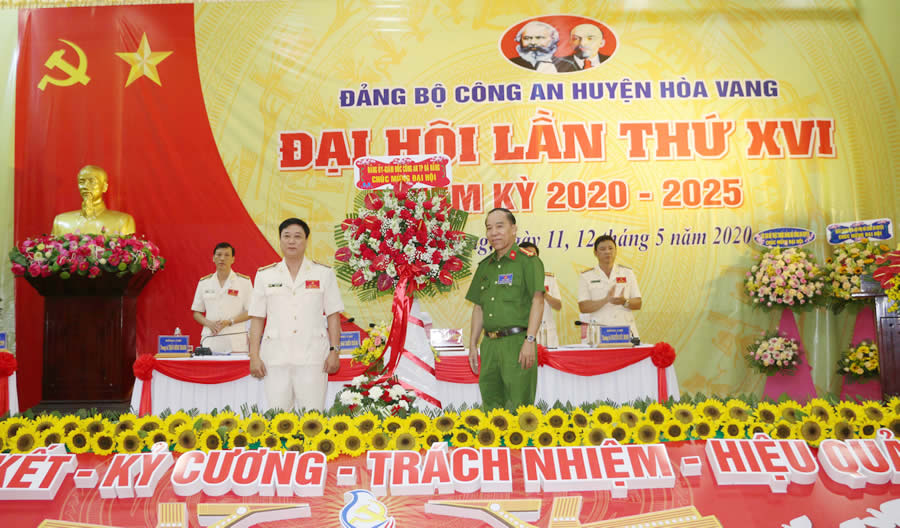 Sáng 12-5, Đảng bộ CAH Hòa Vang (TP Đà Nẵng) tổ chức khai mạc Đại hội lần thứ XVI, nhiệm kỳ 2020-2025. Đại tá Lê Quốc Dân- Phó Giám đốc CATP Đà Nẵng; Bí thư Huyện ủy Hòa Vang Trần Văn Trường đến dự và tặng hoa chúc mừng Đại hội.