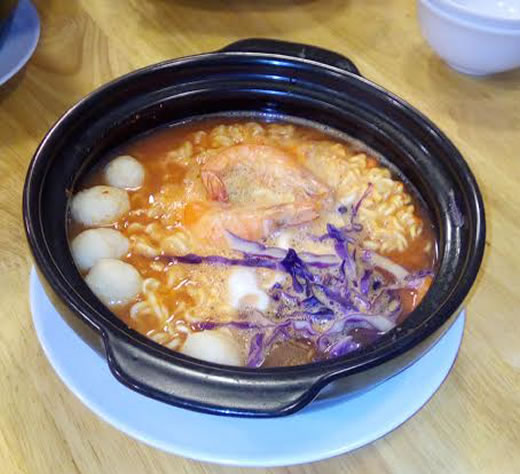Cảm giác đầu tiên khi bước vào quán là mùi ớt thoang thoảng. Ngay khi tôi gọi món, anh Tuệ, chủ quán Saga, giới thiệu: Món ăn Hàn Quốc bình thường đã có vị cay nhẹ. Còn mỳ cay thì tính từ cấp độ 1 đến cấp độ 7, tùy theo thương hiệu. Thông thường, với người ăn cay, dùng món mỳ "cấp độ 2" hoặc "cấp độ 3" cũng đã "vừa" lắm rồi, còn dùng món "cấp độ 7" thì thực sự là rất... rất cay! Anh Tuệ khuyên tôi không nên dùng món "cấp độ 7". Mặc dù vậy, tôi vẫn quyết định nếm thử món ăn được bàn tán quá nhiều này với cấp độ cao nhất, một phần vì tò mò, phần khác là khá tự tin vào khả năng ăn cay của chính mình (thời sinh viên, ở Huế, tôi và đám bạn từng uống rượu gạo nhâm nhi với... ớt; còn khi ăn bánh canh cá lóc thì không ngần ngại nêm thêm một vài thìa ớt bột).