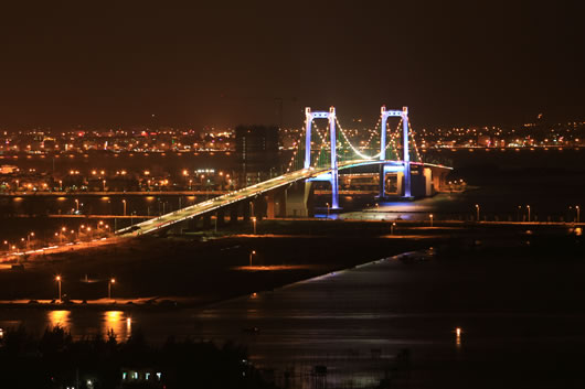 Về đêm cây cầu dây văng Thuận Phước như một dải lụa vắt qua cửa Hàn |