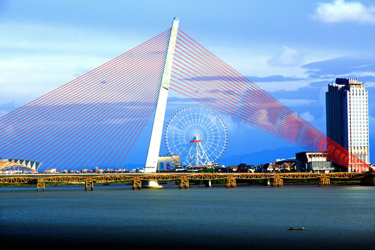 Còn cầu Trần Thị Lý như một cánh buồm khổng lồ biểu trưng cho phố biển đầy sức sống |
