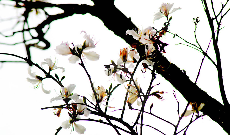 Có cô gái nói: "Sao cây hoa ban mọc cao thế nhỉ?". Ừ, vốn là giống hoa của núi rừng Tây Bắc, sự kiêu hãnh của hoa ban là thế, cho nên ngắm hoa thì phải ngước nhìn. Nhưng không chỉ dừng lại để ngắm hoa, mà phải ngắm cả con đường hoa. Đà Lạt là thành phố cao nguyên, nên những con đường đều lên cao xuống thấp, vì thế mà ở một góc nào của con đường Quang Trung, nhìn xuống dốc, sẽ thấy một bức tranh hoa, là hai hàng cây hoa ban màu trắng chùng xuống, những dòng xe xuôi ngược đi trong hoa. Và khi một cơn gió khẽ lay, những cánh hoa ban trắng ấy khẽ rụng, rơi rất chậm như những cánh bướm đủ để làm cho người nhìn ngắm cảm thấy yêu vì cuộc sống này.