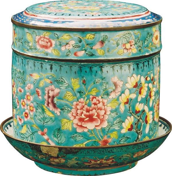 Hộp đựng trần bằng pháp lam trang trí tứ thời. |